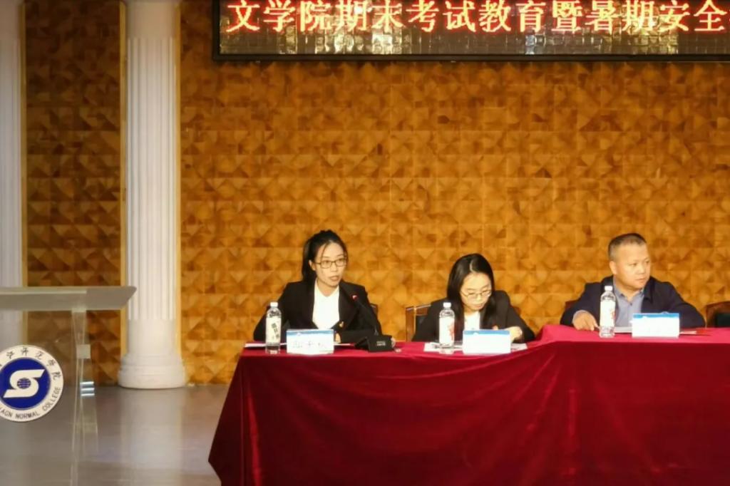 为进一步推进学风和考风建设,营造诚信考试的良好氛围,同时增强学生假期安全意识,保证学生顺利离校返乡,文学院于2024年6月22日九点在第二音乐厅召开期末考试诚信教育暨暑期安全教育工作部署会。文学院党委书记刘晓霞、辅导员纪伟、程雪佳、张东影、邸千桐出席本次会议,学生干部和学生代表参加会议。会议由党委副书记迟艳平主持。