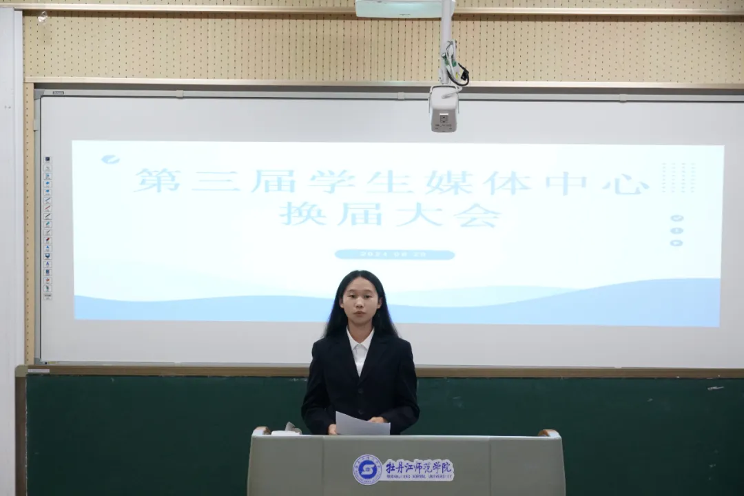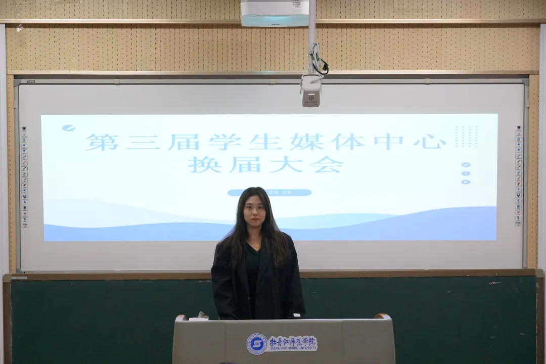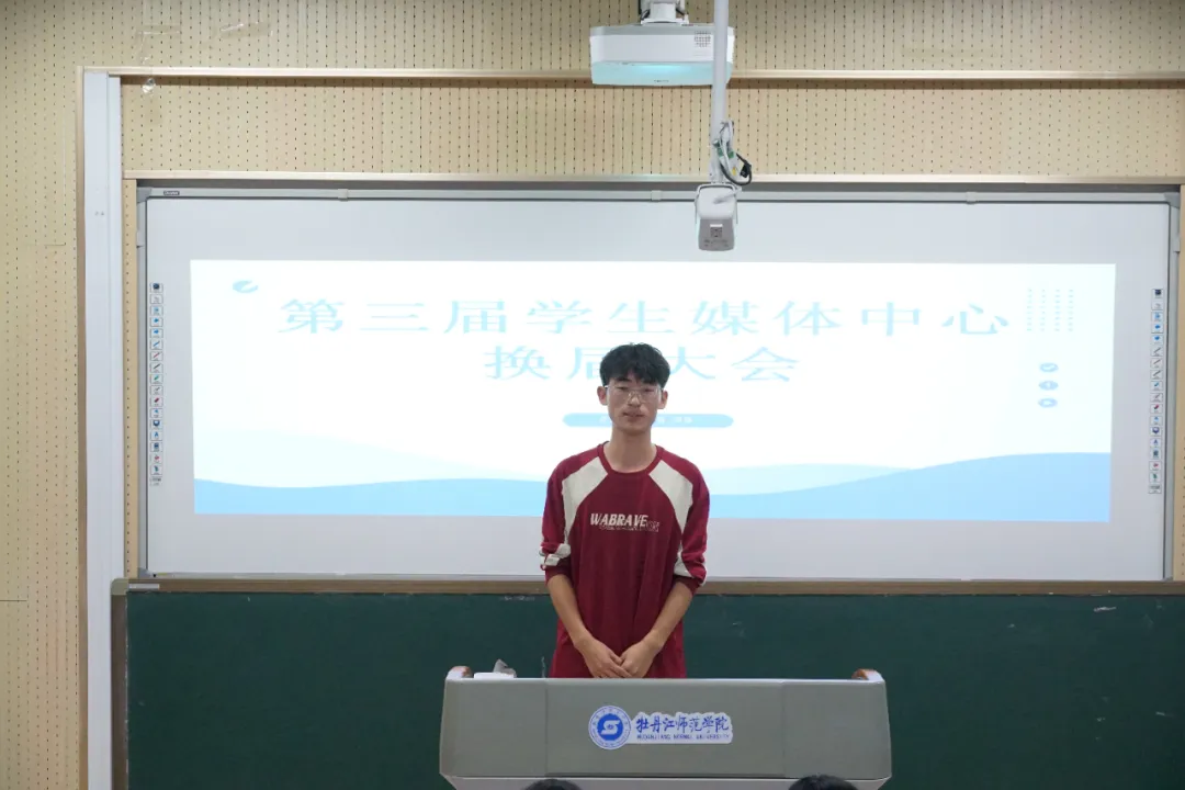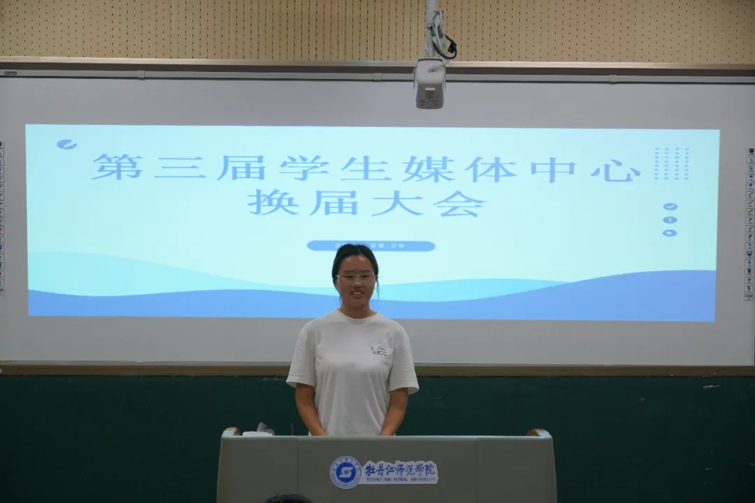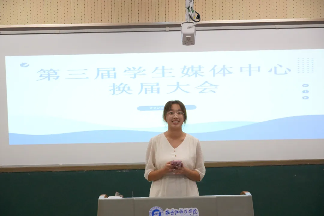 会议第三项议程,第三届学生媒体中心候选人进行竞选演讲。演讲内容主要从自我介绍、竞聘意向、竞聘优势、工作规划四个方面展开,充分展示了自己的才能与潜力,以及乐于奉献、服务同学、共创辉煌的决心与担当