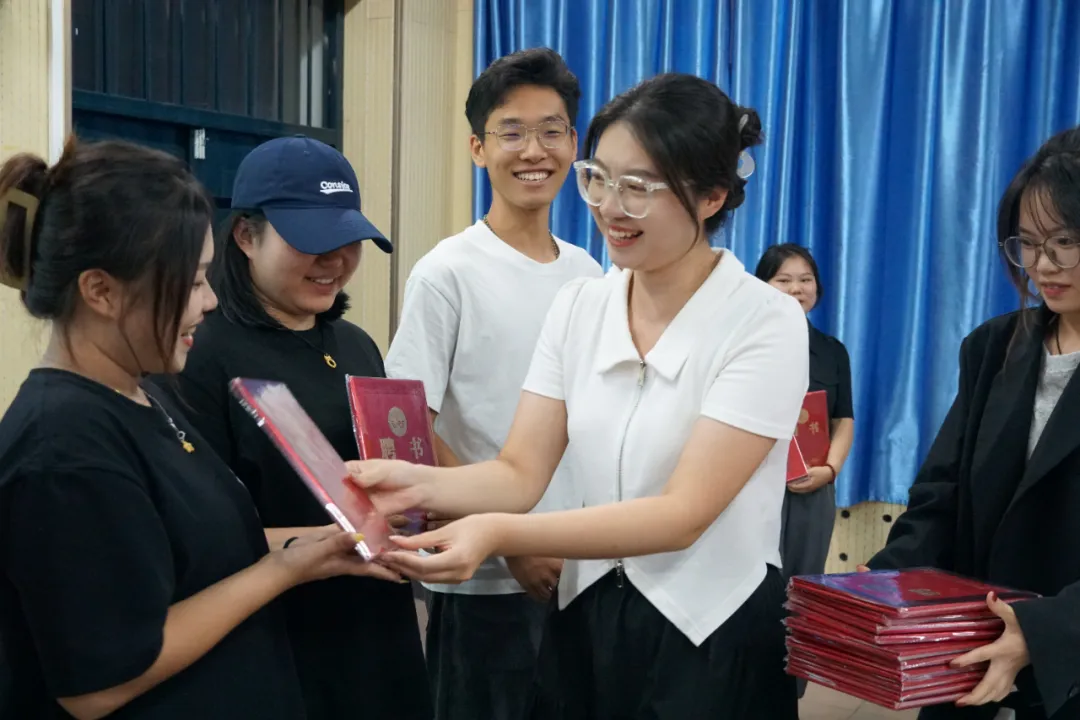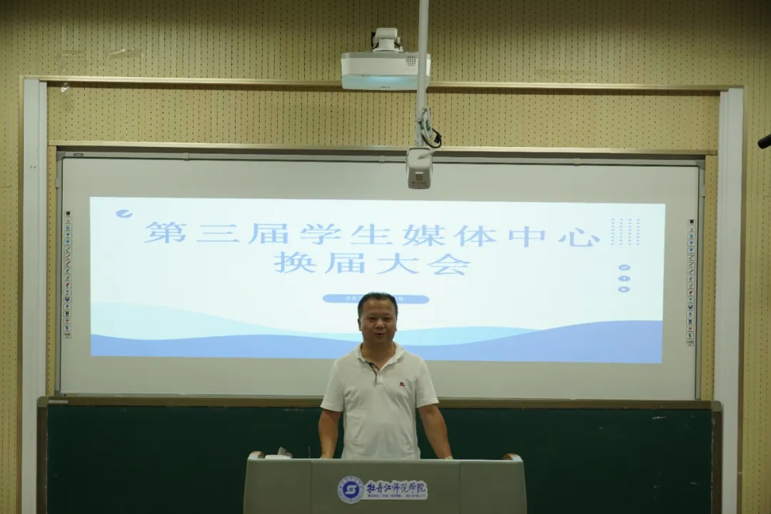 会议第二项议程,指导老师张东影发言,并为第二届学媒主任团、部长、副部长颁发聘书。她对第二届学生媒体中心全体成员夜以继日的努力表示充分肯定,希望下一届学生媒体中心成员能够勇担重任,接过前辈的接力棒,继续发扬学生媒体中心的优良传统,以更饱满的热情投入到工作当中。