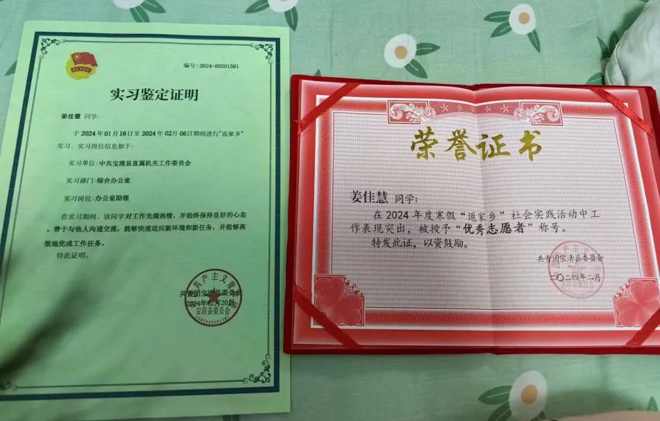 实践心得:寒假期间我参加了大学生“返家乡”社会实践活动,在当地社区进行了为期一月的社区实习,主要的工作内容包括协助社区进行2024年党费缴纳工作、2024年城乡居民医疗保险缴费通知、参与完成社区党员大会报告、社区党员问题清单、整改承诺书等工作。通过这次实习,我充分了解了社区服务的重要性。此次社区实践活动提高了我的社会实践能力。引导我接触、了解社会,增强我的社会责任感和社会适应能力。更让我明白了学会独立的重要性。也同样加强了我的劳动观念,帮助我树立正确的人生观、价值观。培养了我的竞争意识和开拓进取的精神。