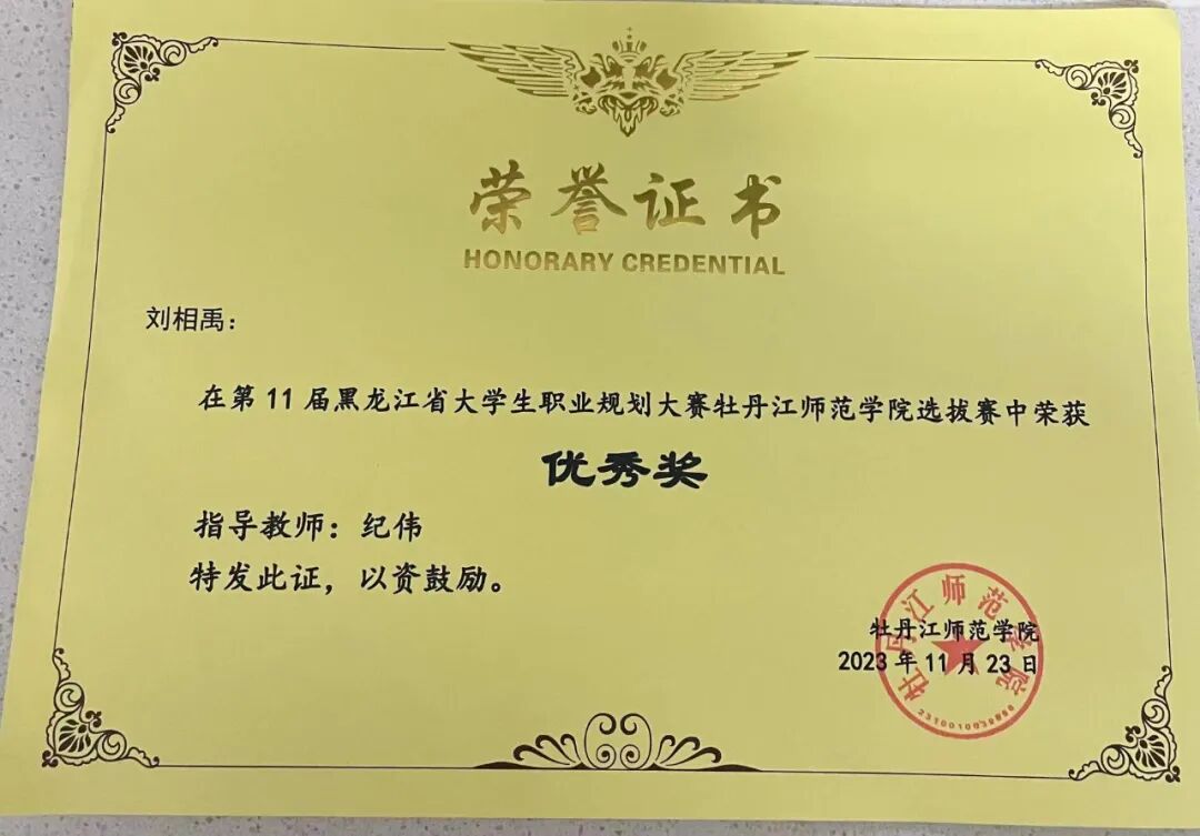青春逢盛世,奋斗正当时。在2021年我考入牡丹江师范学院汉语言文学专业。过去的大学时光里,我始终以成为一名优秀的语文教师为目标而不懈努力,认真学好每一门课程,不断提升从师技能。我的成绩始终保持名列前茅,一次性通过了英语四六级考试和高中语文教师资格证考试,拿到了普通话二级甲等证书。并且荣获了专业二等奖学金、校级三好学生、省级三好学生等荣誉。我坚信只有永不停息的努力,即使前途荆棘满布,也定将“直挂云帆济沧海”。作为文学院第二届学生媒体中心的一名学生干部,我认真履行工作职责,提高撰稿能力,协调好文学院学生媒体中心的宣传与组织工作,并坚信要做好带头作用,严格要求自己,定期对工作进行反思并总结,在实践中不断完善自己,提升自己。