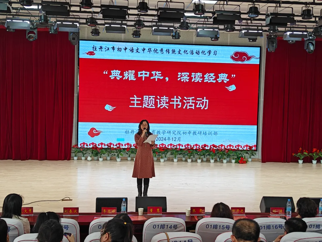 为进一步营造校园书香氛围,促进学生积极学习和传承中华优秀传统文化,12月19日,牡丹江市教育教学研究院初中教研培训部于牡丹江市第二十一中学开展牡丹江市初中语文中华优秀传统文化活动化学习——“典耀中华,深读经典”主题活动,牡丹江师范学院文学院董慧教授受邀参加此次活动并担任点评嘉宾。