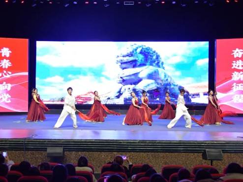 为丰富大学生的校园文化生活,提高学生的文化艺术素养,给同学们提供一个展现才艺、挥洒激情的舞台,以舞蹈的形式展现牡师学子胸怀家国、不忘初心、奋力逐梦的价值追求和生命底色,牡丹江师范学院于2023年11月22日13:30在第一音乐厅举办“青春心向党,奋进新征程”舞蹈大赛。文学院响应学校号召,积极参加本次大赛。 赛中,文学院代表队紧扣比赛主题,在交错的舞台光影中展现青春活力,以华美的舞步为江山如画、锦绣万年、“此生无悔入华夏”的国家书写报国鸿志。其参赛作品《万疆》,以曼妙的舞姿舞动祖国大好河山。正如歌曲所唱,“红日生在东方,其大道满霞光”,文院学子舞出了胸中质朴真挚的爱国之情,他们脚下的每一段舞步都直戳心底,都自豪于祖国的伟大与辉煌。
