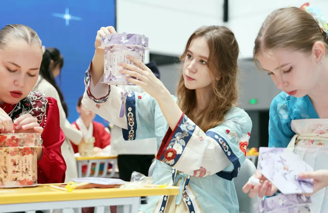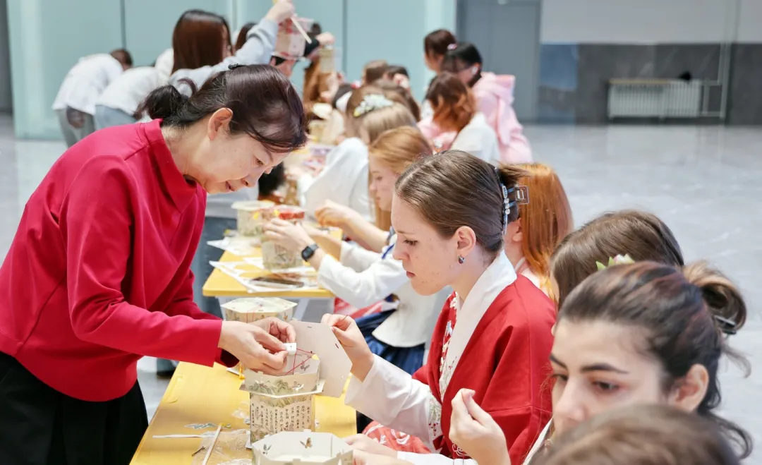 演出结束后,留学生们品尝了香甜的月饼,并在老师们的指导下亲手制作了精美的宫灯,点亮了对家人的思念与祝福。留学生们身着中华传统服饰,手提几十盏闪亮的灯笼,成为了一道靓丽的文化风景线。