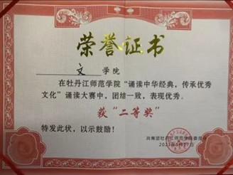 文学院在牡丹江师范学院“诵读中华经典,传承优秀文化”诵读大赛中获得第二